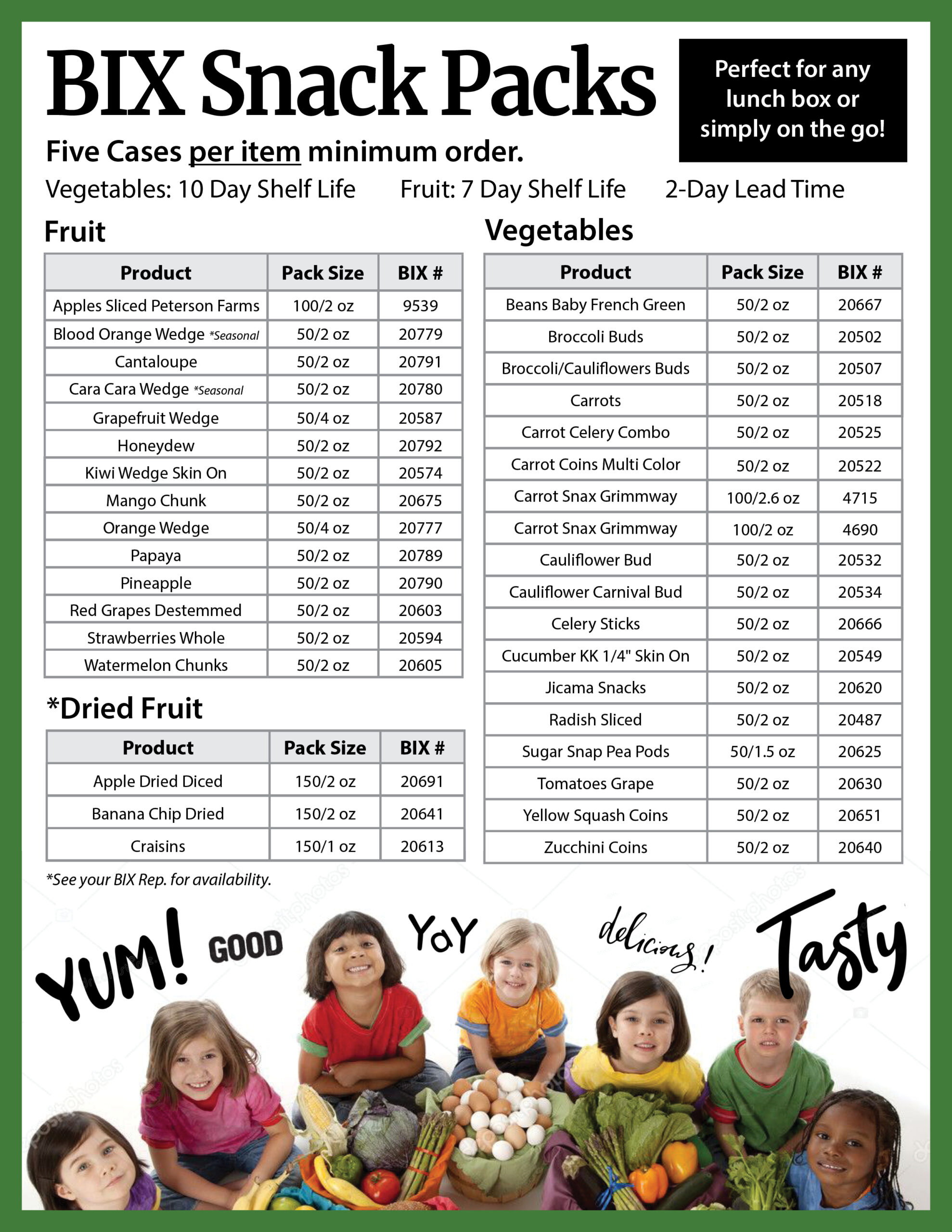 BIX Snack Packs Item Numbers 2023